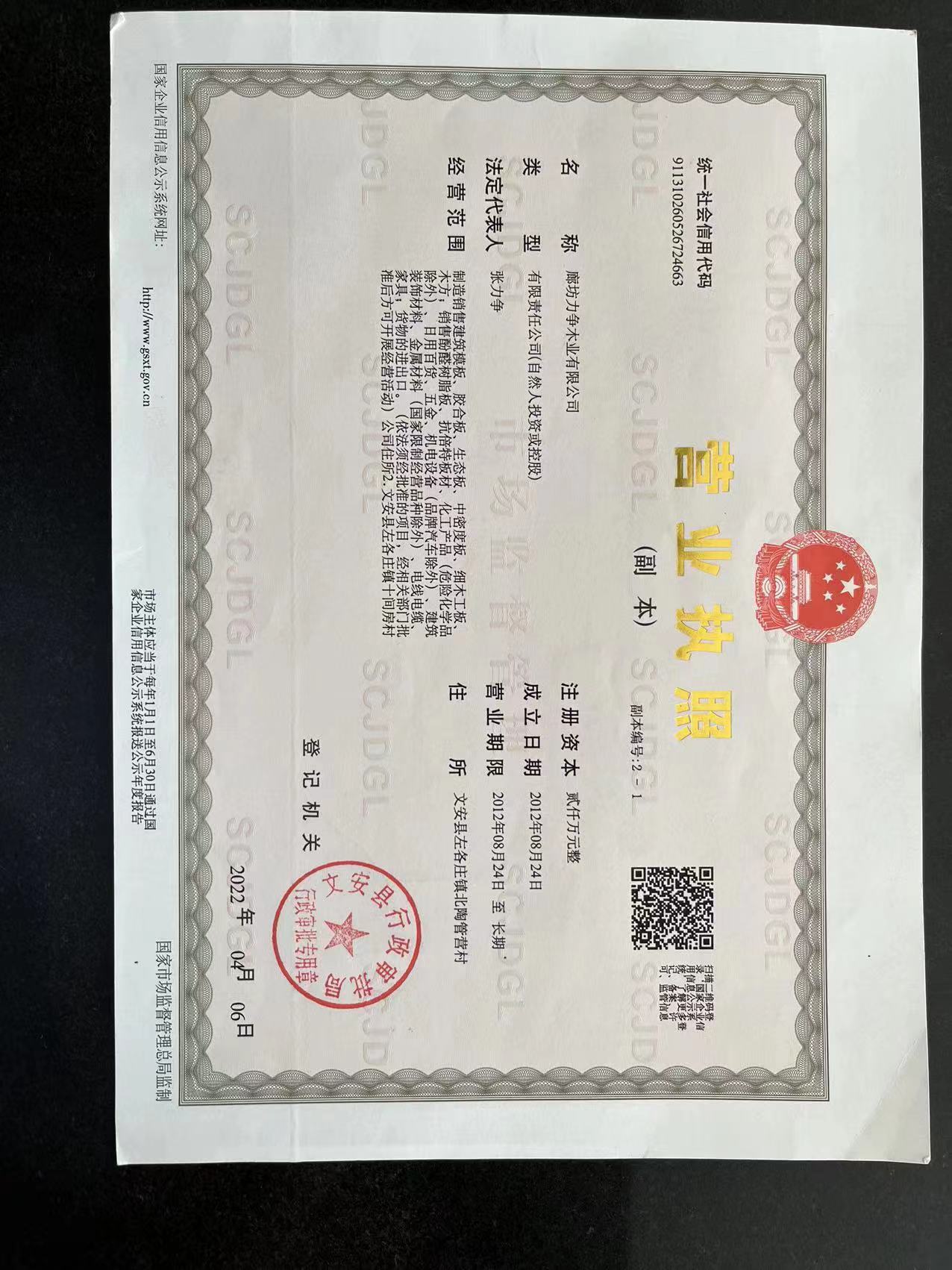 廊坊力爭木業(yè)有限公司創(chuàng)建于1995年,至今已有兩個生產(chǎn)基地。公司占地200畝,建筑面積6萬平方米。是華北地區(qū)生產(chǎn)各種規(guī)格清水模板的企業(yè)。坐落于河北集科研、生產(chǎn)、銷售于一體的膠合板市場左各莊鎮(zhèn)。公司不斷發(fā)展,逐漸擴(kuò)大。于2006年公司遷入新址——南外環(huán)。地處京、津、保三角經(jīng)濟(jì)圈中心地帶,地理位置便捷。